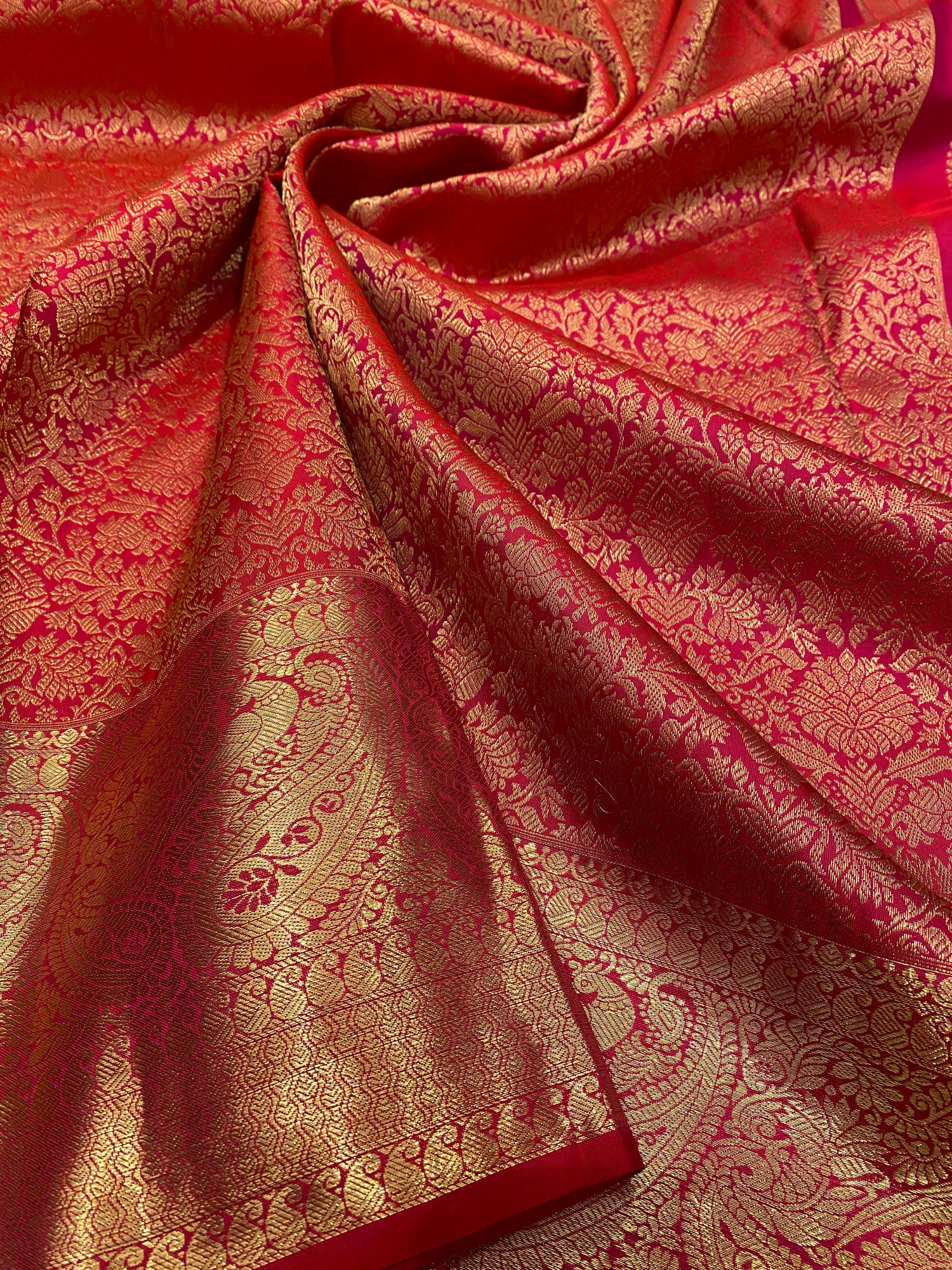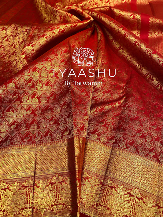 CLASSIC GOLD AND RED KANJIVARAM SILK SAREE