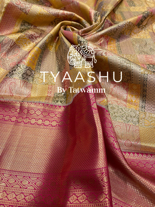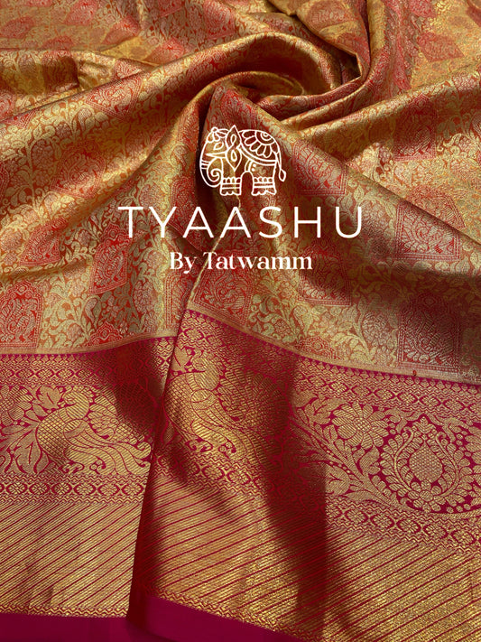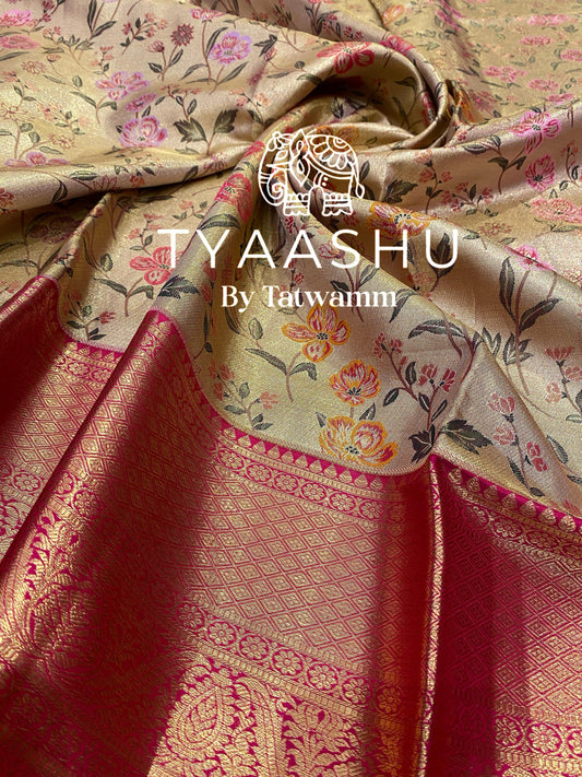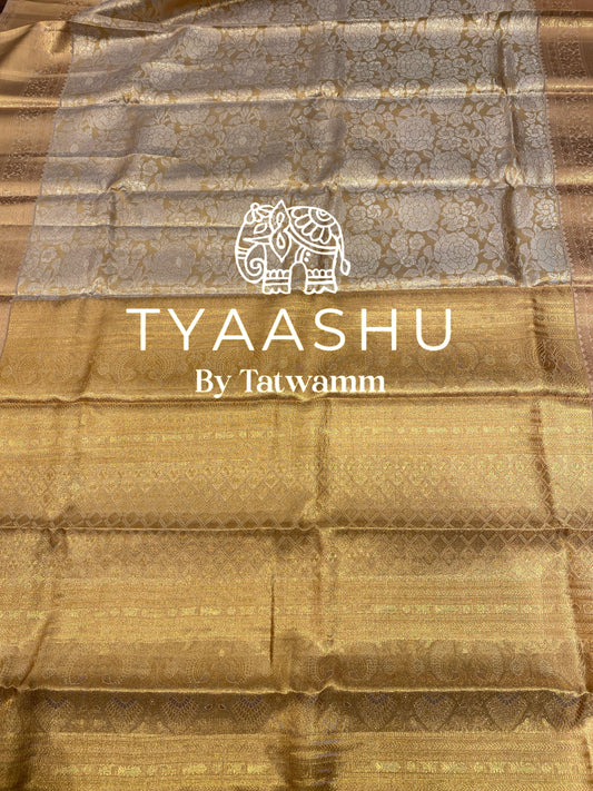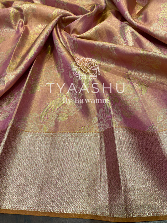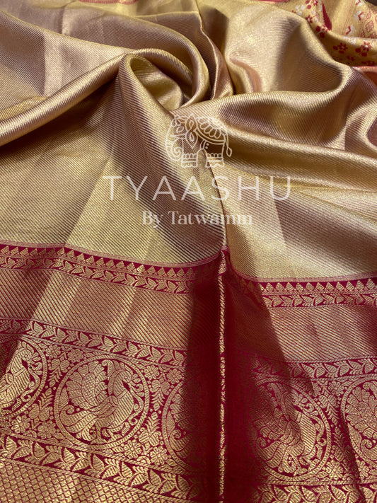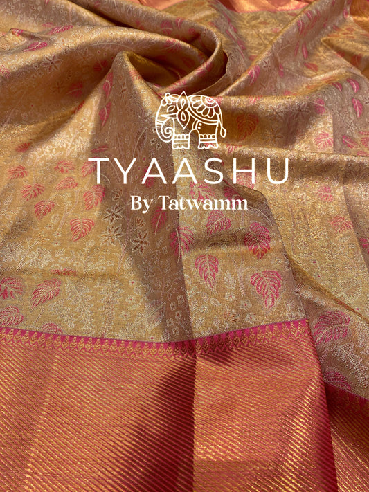 LUXURY KANJIVARAM SILK SAREE IN SUBTLE GOLD AND SOFT PINK