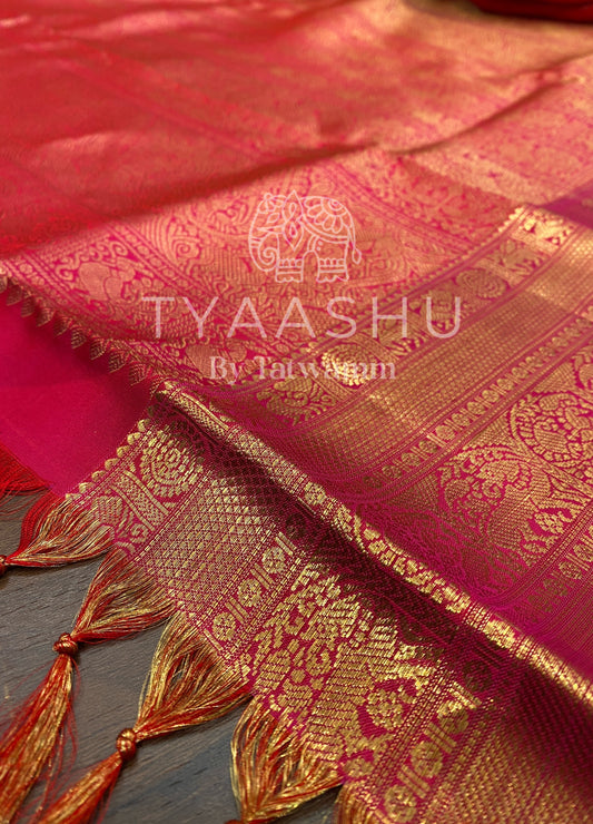 HANDWOVEN PINK AND GOLD KANJIVARAM SAREE